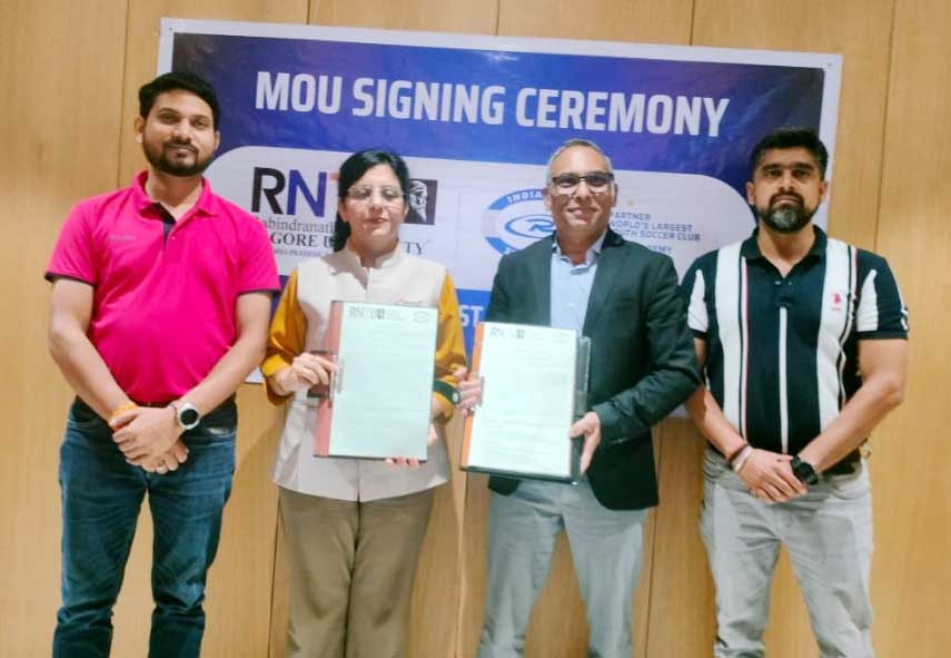 आरएनटीयू और इंडिया रश सॉकर क्लब का एमओयू, फुटबॉल खिलाड़ियों के लिए भोपाल शहर में टैगोर फुटबॉल क्लब एक नया प्लेटफॉर्म