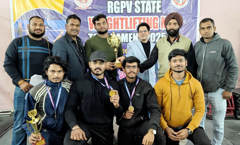 आरजीपीवी राज्यस्तरीय वेटलिफ्टिंग (पुरुष) प्रतियोगिता 2025-26 ; 3 स्वर्ण और 2 रजत पदकों के साथ भोपाल नोडल बना ओवरऑल चैंपियन